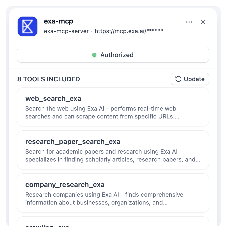 一旦找到工具,你将看到服务器卡片: